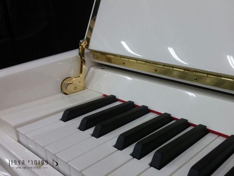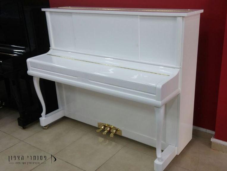 פסנתר בצבע לבן מבריק. פסנתר מרשים ויפיפה ברמת גימור גבוהה ביותר! פסנתר גבוה – 116ס"מ, רגליים עגולות, מנגנון טריקה שקטה, מגע קלידים מושלם וצליל מדהים. פסנתר מהמם! להתאהב מהרגע הראשון!